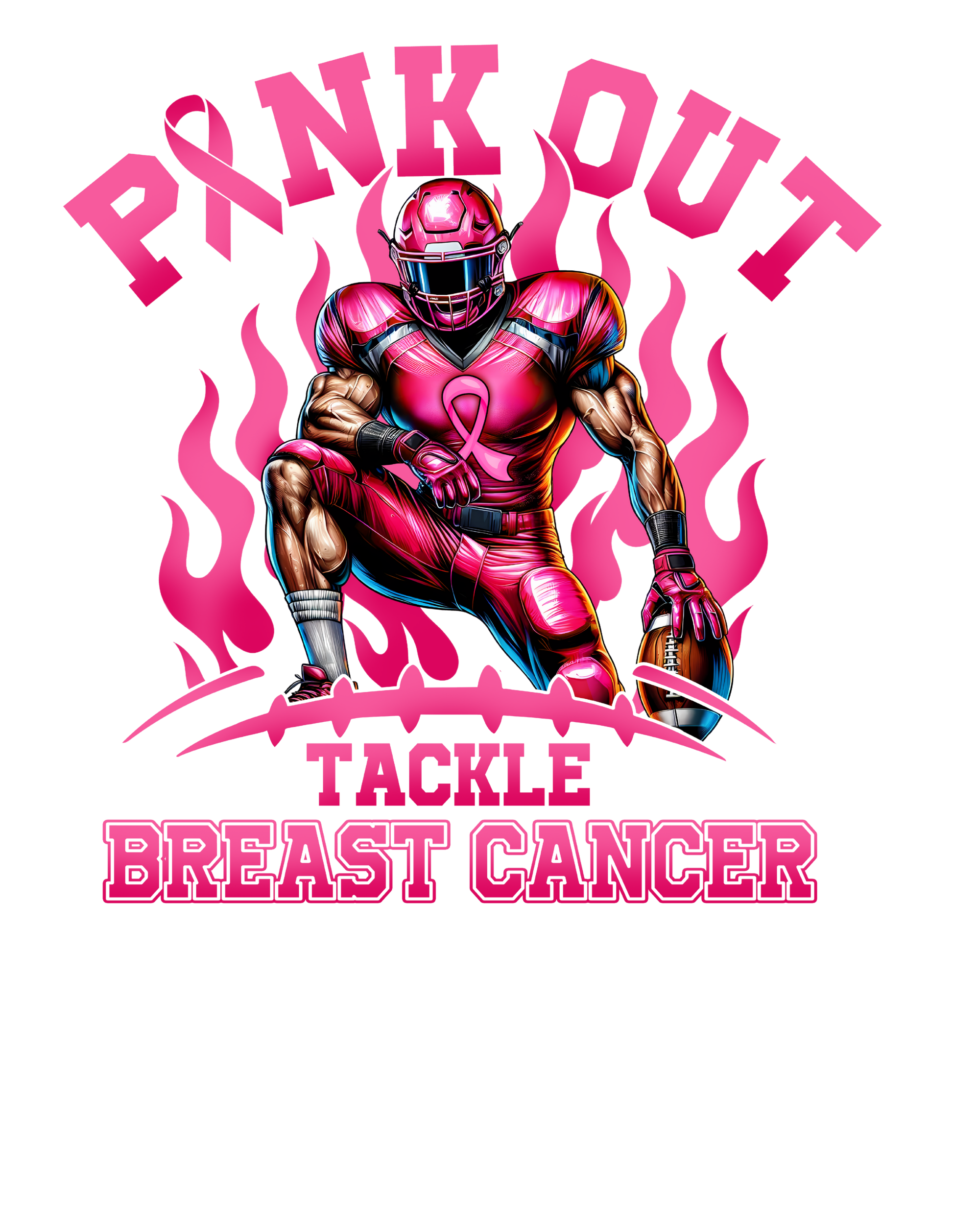 Show your support for breast cancer awareness in style with our newly designed “Pink Out – Tackle Breast Cancer” hoodie! This hoodie features a bold, eye-catching design that’s perfect for standing out at events, games, or casual outings.
